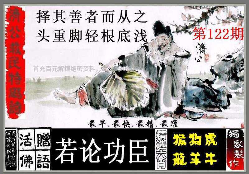 122期:济公特码诗:择其善者而从之,头重脚轻根底浅(开:猪07)解:择其善者而从之,头重脚轻根底浅,解肖猴狗虎龙羊牛 九肖:狗龙虎牛鸡马猪猴蛇